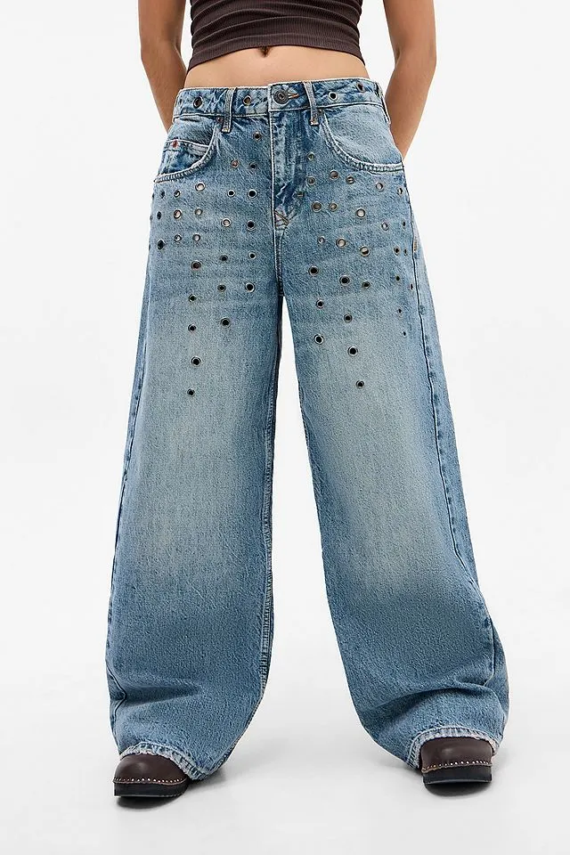 90er-inspirierte ultra-l?ssige Jeans von BDG in blauem Denim mit ?senverzierungen. Geschnitten f¨¹r eine tiefe Taille mit G¨¹rtelschlaufen, einem Knopf und zip Verschluss, einer charakteristischen F¨¹nf-Taschen-Silhouette und einem weiten Bein. Nur bei UO.
