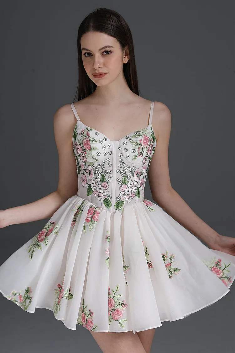 Spaghetti Straps V Neck Corset Mini Floral Dress